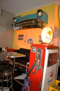 Wer den American Style der 50iger Jahre liebt, ist hier genau richtig im American Fifties Restaurant in Wien im Bezirk Döbling. Leckere Burger, Sandwiches, Fingerfood, und der American Mustard von Heinz, warten zu vernünftigen Preisen auf die Besucher. Zudem werden diverse Drinks mit und ohne Alkohol, sowie Milchshakes angeboten. Mit der Rock´n Roll Musik aus den Musikboxen und der Elvis Statue, fühlt sich jeder Gast sofort in ein Amerika der 50iger Jahre zurückversetzt.Mit der U4/U6 sowie der Straßenbahnlinie D Station Spittelau, ist das Restaurant gut zu erreichen.  http://www.flys.at/