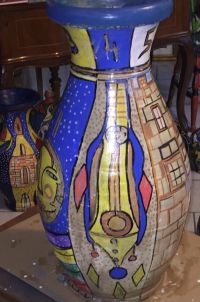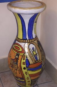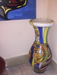 Der Maler Mario De Sisto widmet sich auch der Malerei von Terrakotta. Er stammt ursprünglich aus Kampanien in Italien, wo bemalte Terrakotta tausendjährigen Ursprungs ist.