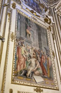 Die Kirche wurde zwischen 1583 und 1600 von Martino Longhi rekonstruiert, der gleichzeitig die frühbarocke Fassade lieferte. Die Kirche hat 11 Seitenkapellen im Besitz von Adelsfamilien und Mitgliedern der örtlichen Handwerkszunft.