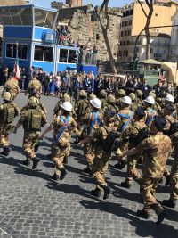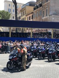 71 Jahre nach der Ausrufung der Republik Italien am 2. Juni 1946. Heutige Thema der militärische Zeremonie war "Zusammen für Italien". Die Militärparade wollte die Rolle der Streitkräfte zusammen mit anderen Institutionen, in den Dienst der Bürger zu stellen . Die offizielle Teil der Veranstaltung wurde zur Nato und zur EU und UN-Missionen gewidmet .