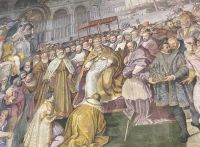 Der Saal wurde unter Papst Paul III. von Antonio da Sangallo dem Jüngeren begonnen und 1573 fertiggestellt.