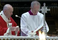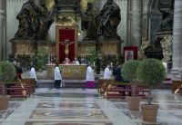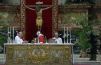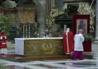 Heutzutage feierte Papst Franziskus die Palmsonntagsmesse ohne Pilger im Petersdom in Rom.