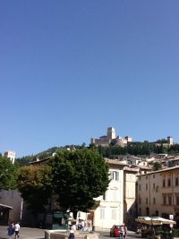 Die Stimmung dieser Landschaft und dieser Stadt Assisi bezieht sich unmittelbar auf die Person Franz von Assisi. Eine wunderbare Weltharmonie, ein ausgeklügeltes Zusammenspiel von Licht und Farben erzeugt eine faszinierende Stimmung in Umbrien. Assisi ist eine Stadt mit 28.299 Einwohnern. Der Ort (lateinisch Asisium, älteres Ital./Tosk. Ascesi [a'ʃesi] oder Scesi, heute nicht mehr gebräuchlich) wurde von den Römern im Jahr 399 v. Chr. kolonisiert und terrassenförmig auf einem Felsrücken an der Westseite des Monte Subasio ausgebaut.