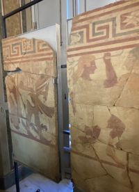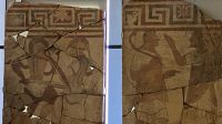 Vier bemalte etruskische Platte, die von der italienischen Finanzpolizei sichergestellt wurden, wurden am 17. Juni 2022 in Rom der Öffentlichkeit präsentiert. Es ist eine unerwartete Entdeckung, die Meisterwerke der archaischen etruskischen Malerei zurückbringt, die lange Zeit durch illegale Ausgrabungen verborgen waren. Obwohl leider nichts über den archäologischen Kontext bekannt ist, zu dem die Platone gehörten, sind die stilistischen und formalen Merkmale voll erkennbar.