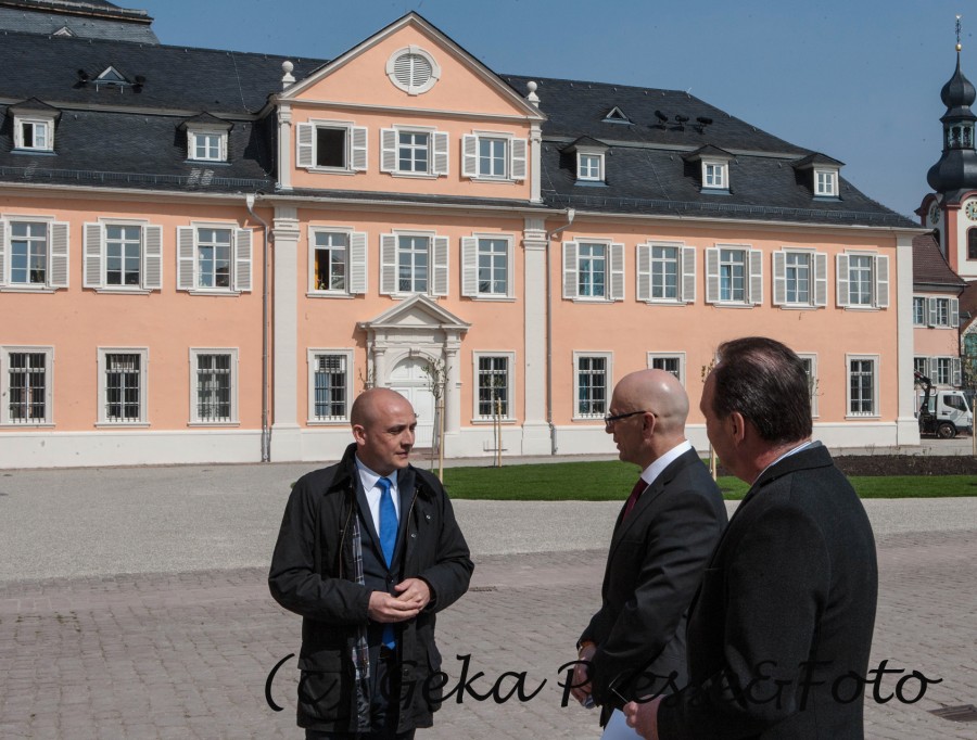 Wie wichtig für das Schloss Schwetzingen gerade der Eingangsbereich ist, erklärt Geschäftsführer Michael Hörrmann so: "Der Hof ist die Schauseite, mit der sich das Schloss und der Schlossgarten zur Stadt und gegenüber seinen Gästen zeigt," und er ist sehr zufrieden, dass die Sanierung, die immerhin € 210.000 gekostet hat, pünktlich zum Start in die Saison abgeschlossen werden konnte. Die Ehrenhofflächen um die Rosenovale sind übrigens nach historischem Vorbild als wassergebundene Kieswegeflächen angelegt. Erinnert daran, dass im 18.Jahrhundert der Ehrenhof Freifläche für Empfänge war und vor allem als Vorfahrt für die Kutschen genutzt wurde. Im Sommer war das Schwetzinger Schloss und seine Gartenanlage Refugium für die Kurfürsten. Im Moment laufen die Rennovierungsarbeiten im Schloss auf vollen Touren. Wenn sie im September, so der Plan, abgeschlossen sind, kann Hörrmann mit seinem Team ein Gesamtkunstwerk höchster Qualität anbieten.
