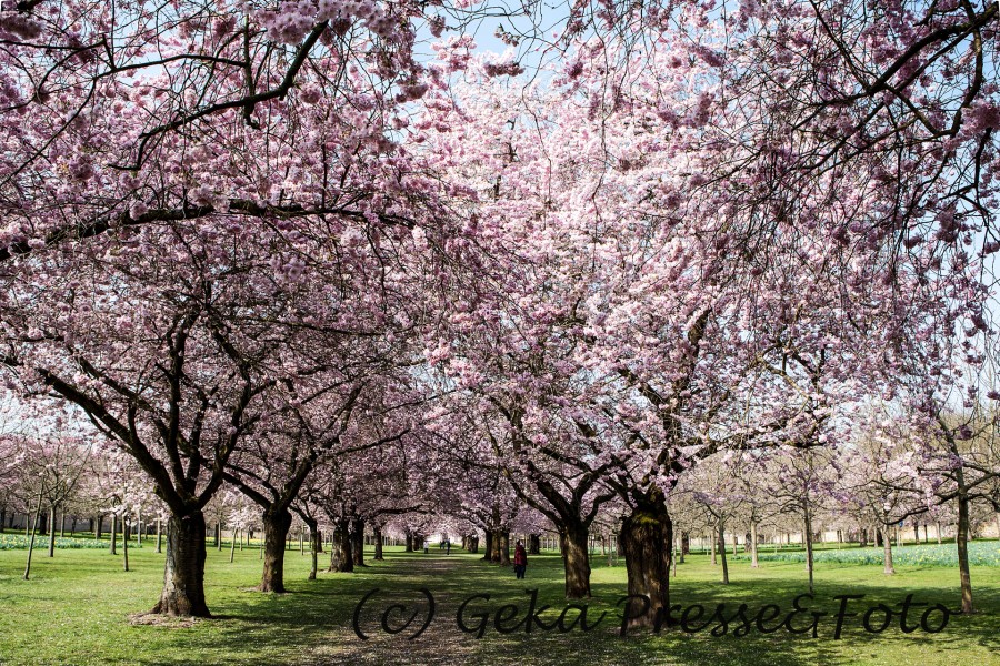 Einher mit dem Saisonstart im Schloss Schwetzingen im April geht die Blüte der Kirschbäume im Garten vor der Moschee, quasi der Startschuss für die Saison. Die Skulpturen im Garten werden ausgepackt, die Springbrunnen erfreuen die Besucher mit ihren Wasserfontänen. Trotz wechselhaftem und kalten Wetter war das Besucherinteresse an Ostern bereits sehr gut. Der Garten mit den blühenden Kirschbäumen spielte mit. Farbenpracht nach der Tristesse des farblosen und nebligen Winters. Jetzt ist der Frühling da. Im Übrigen ist die Kirschblüte aktuell auf ihrem Höhepunkt. Wenn in den nächsten Tagen die Temperaturen frühlingshaft sein werden, treffen sich dort die Picknick-Anhänger und die Hobby-Fotografen machen ihre Speicherkarten voll. Das Gesamtbild passt und lädt zum Besuch und zum Verweilen in einem kulturellen Monument ein.
